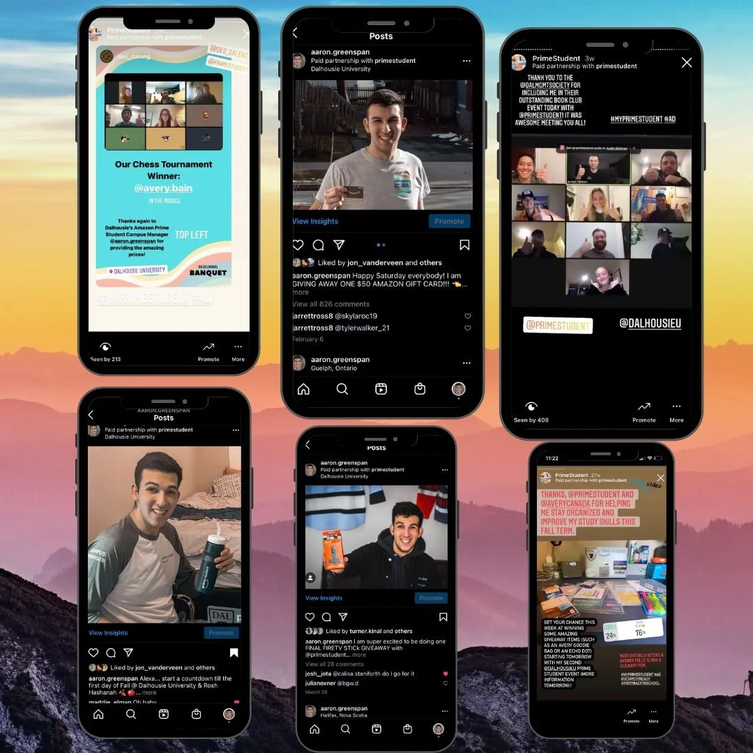Successfully completing over 20+ organized Prime Student sponsored events and programs for Campus societies in Atlantic Canada and producing over 85+ pieces of Branded content for Amazon.